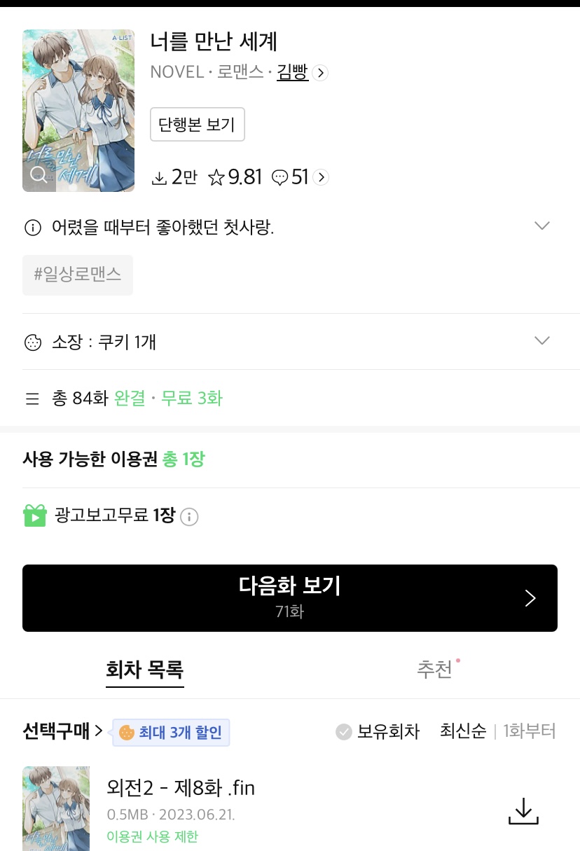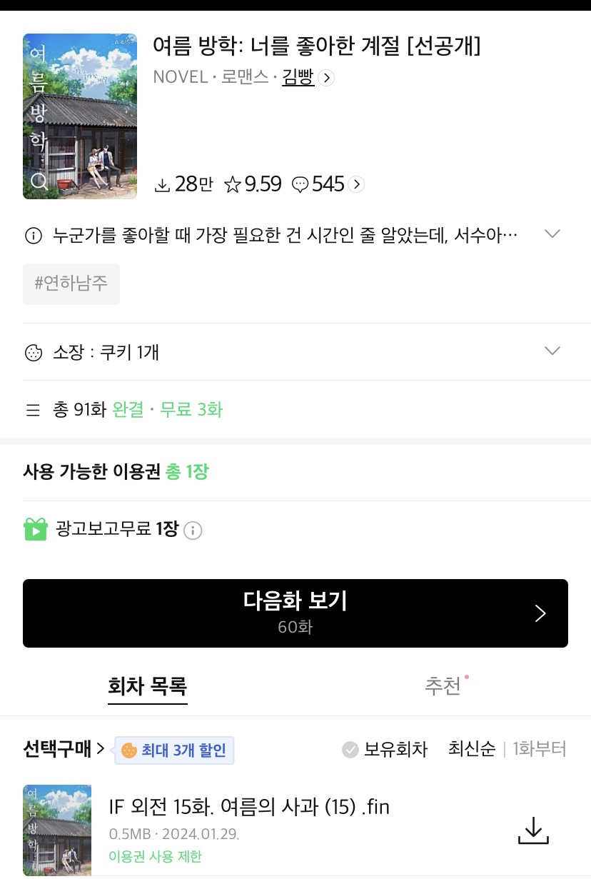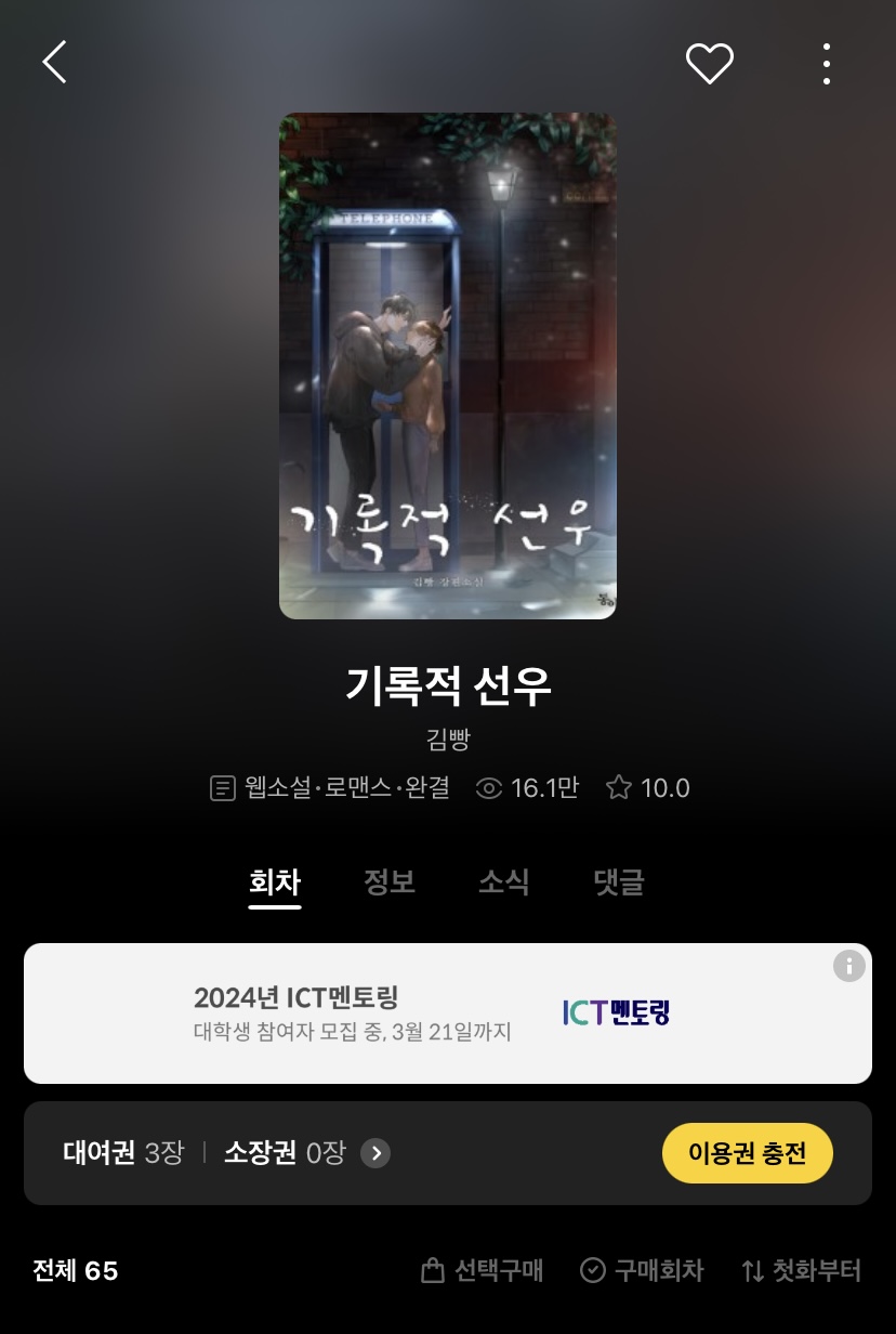 리디에서 발견했던가? 기록적 선우도 못 봤네.