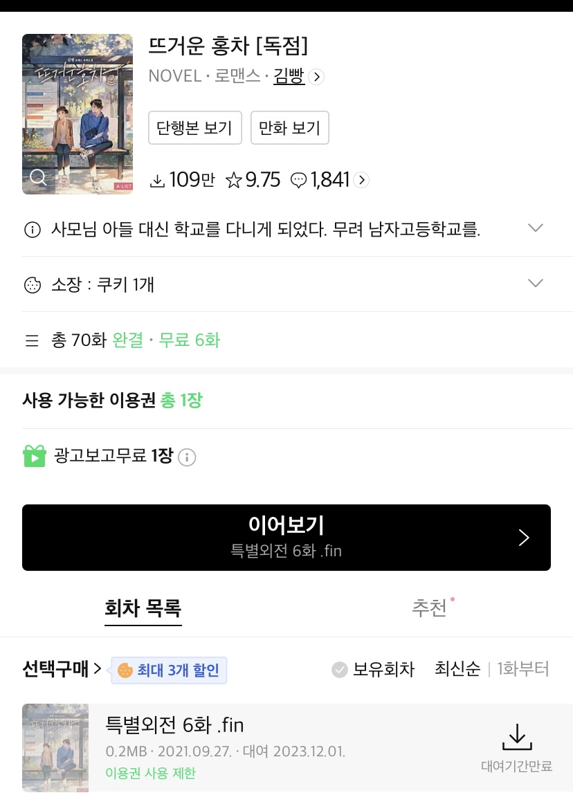 카카페에서 봤던 그 작품. 알라딘 중고서점에서 들여놓고 아직 안 본
